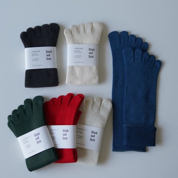 私たちも一年通して愛用している「Gluck und Gute / グリュックントグーテ」さんの靴下。肌にあたる内側はシルク100%、外側をウール100%の糸で編みあげたお肌にも優しい二層構造。 シルク糸を贅沢に使ったパイル編みが足に心地よく、吸湿性の高いウールの特性でいつも足はさらさらな快適な状態を保ってくれます。