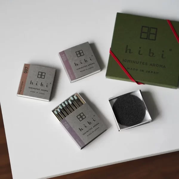 線香の一大産地・淡路島で革新的なものづくりを続ける「株式会社大発」と、マッチ製造に長い歴史を持つ「神戸マッチ」が3年の期間をかけて開発したマッチ型のお香「hibi(ヒビ)」。着火具がなくても手軽に使えるのが魅力。